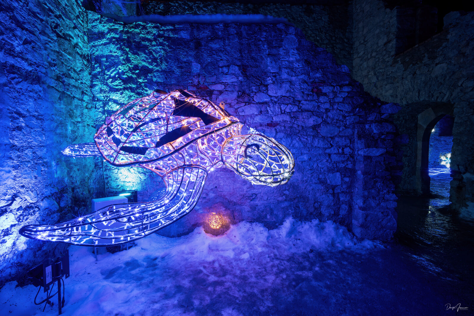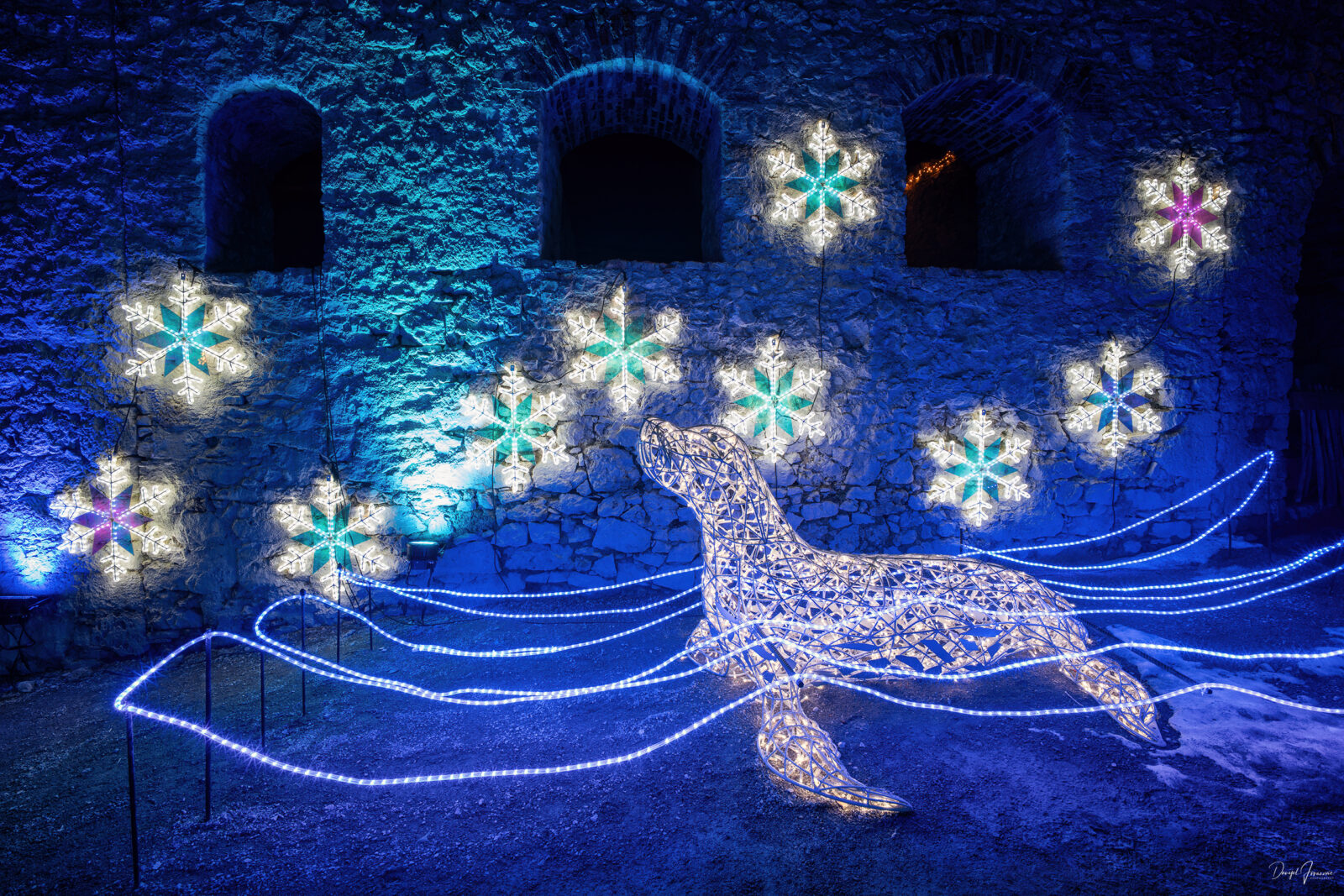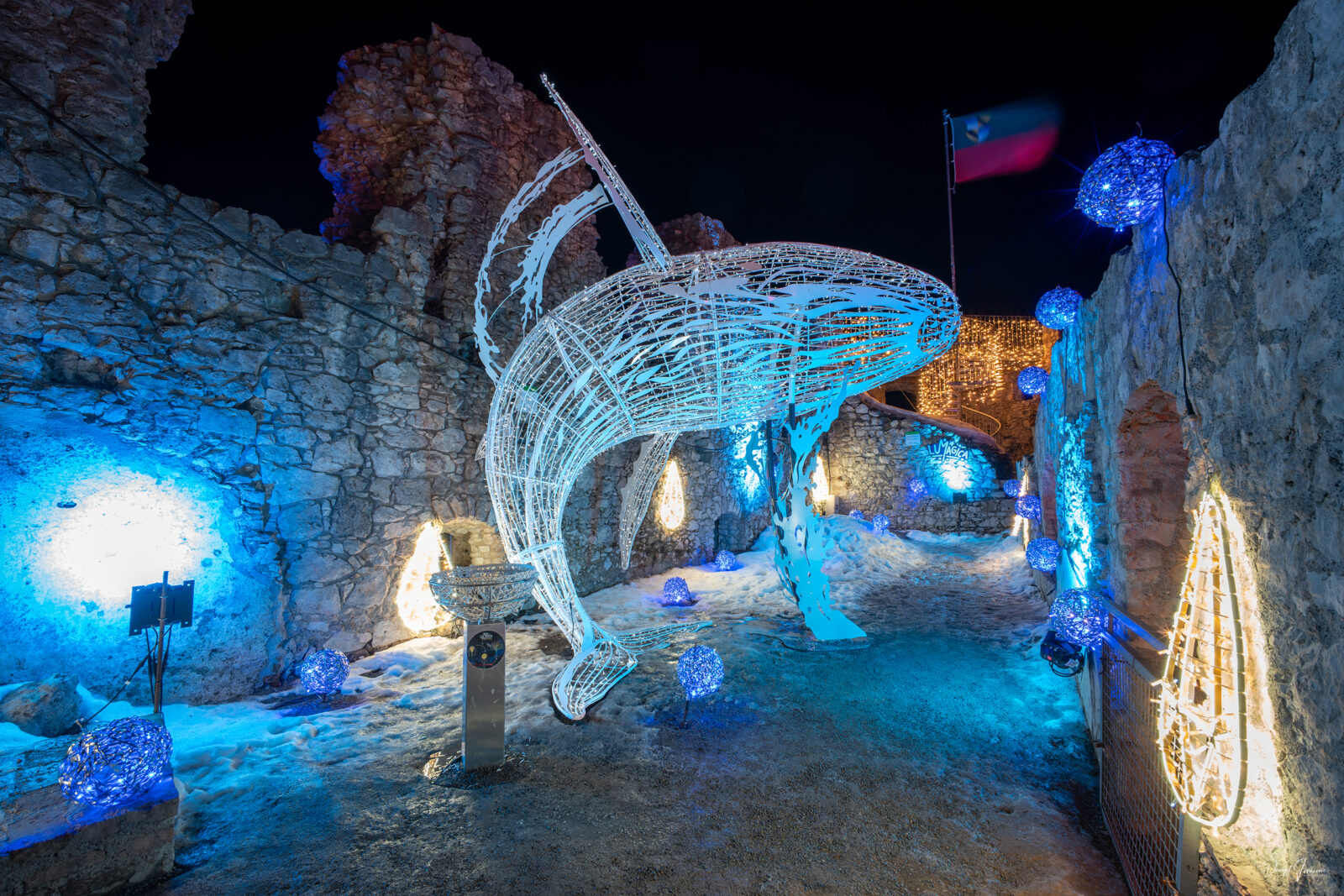 Der Rundgang ist den verschiedenen Elementen gewidmet. Jede Station erzählt ihre eigene Geschichte und wirkt auf ihre ganz eigene Weise. Mal leise und beruhigend, mal intensiv und kraftvoll. Die Lichtinstallationen fügen sich harmonisch in die alten Mauern, Tore und Wege ein, als wären sie schon immer Teil dieses Ortes gewesen.