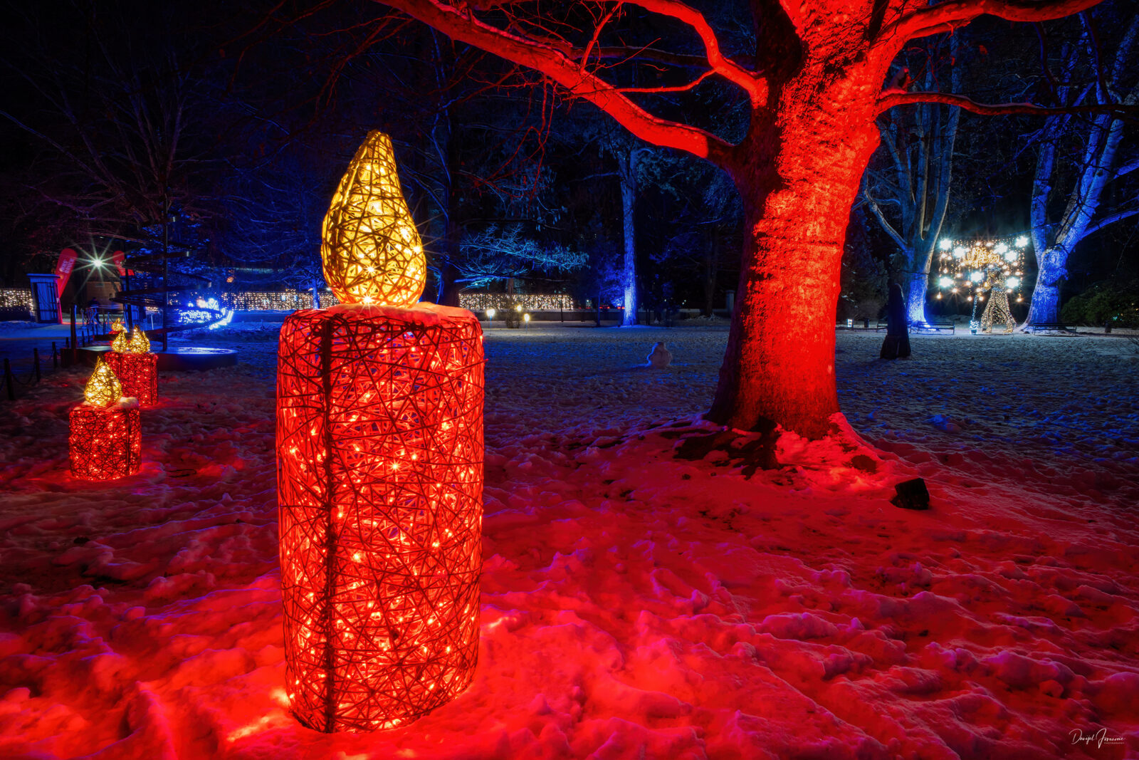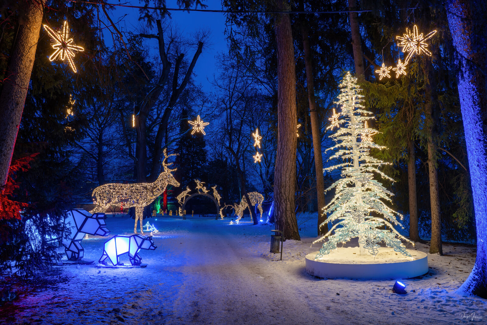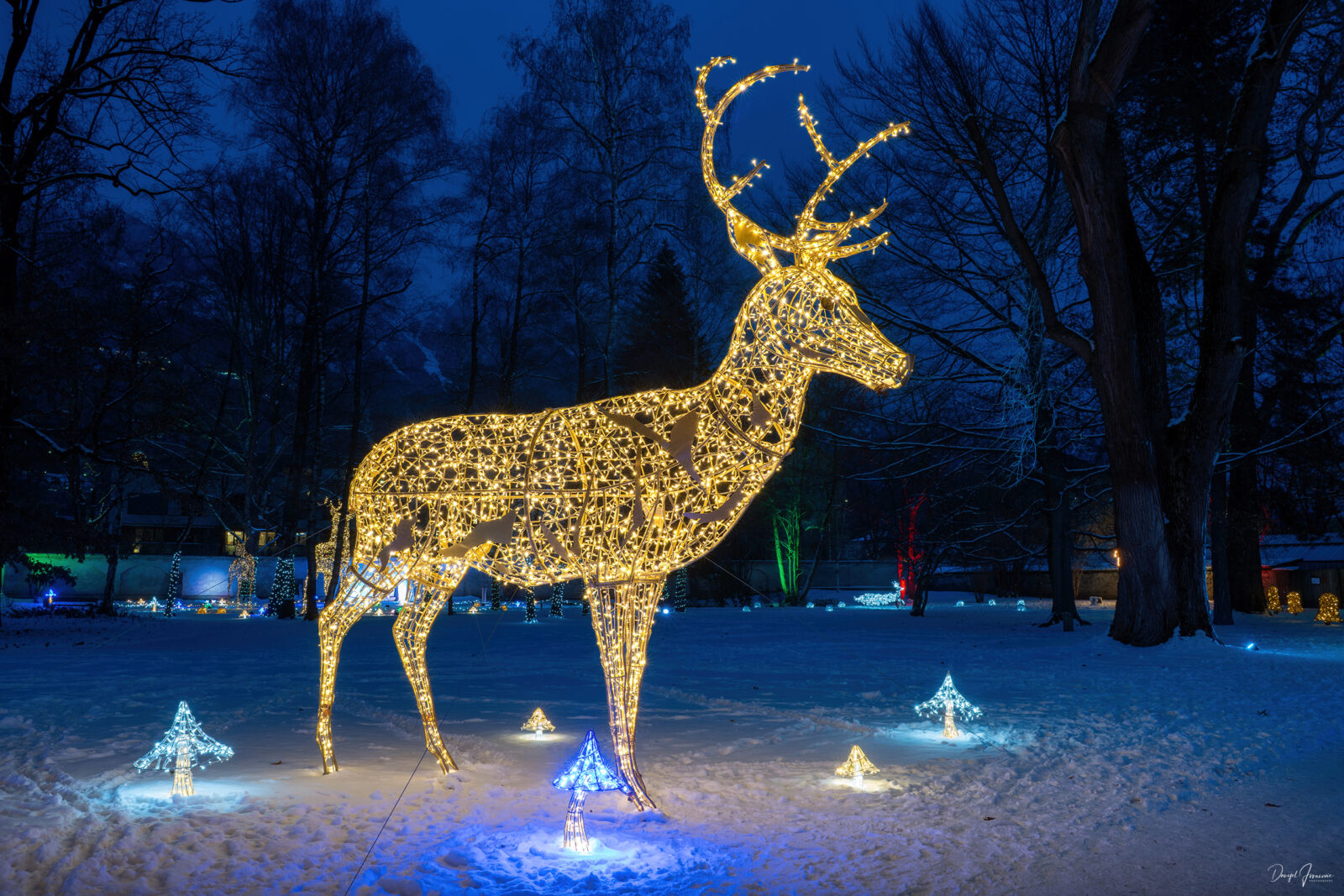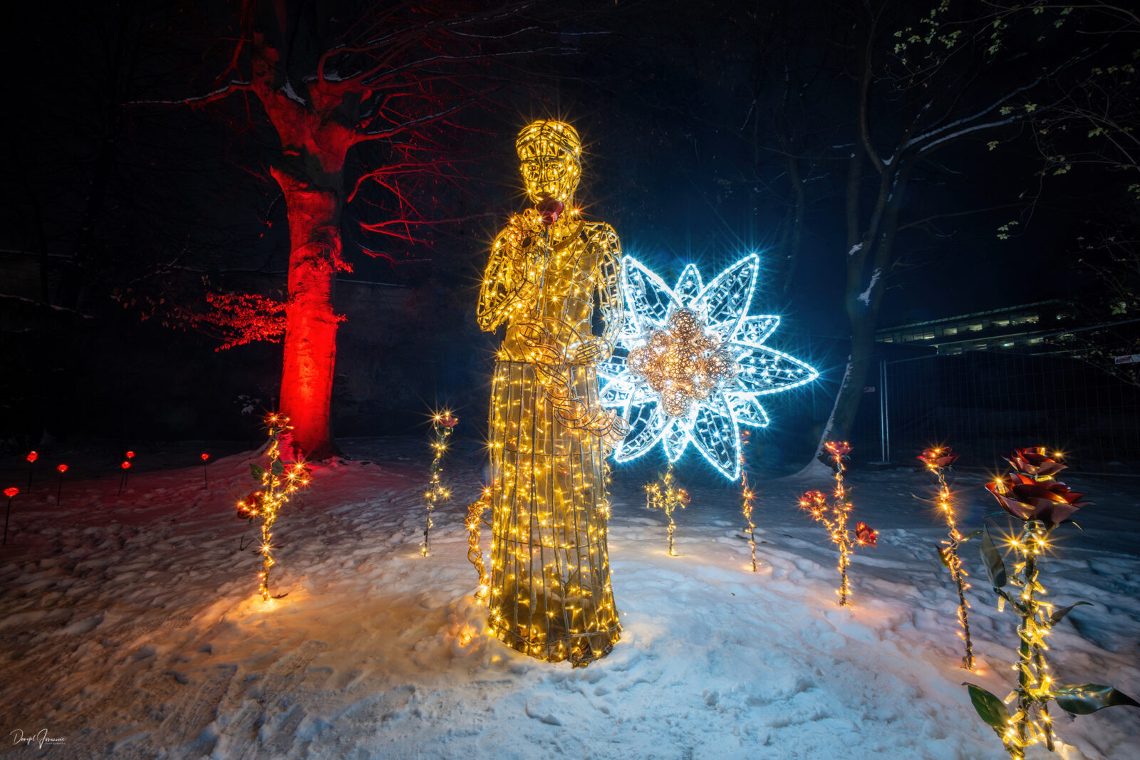 Sobald es dunkel wird, entfaltet der Lichterpark seine volle Wirkung. Entlang der Wege reihen sich kunstvoll gestaltete Lichtinstallationen, die sich harmonisch in die Umgebung des Hofgartens einfügen. Bäume, Sträucher und offene Flächen werden gezielt in Szene gesetzt und schaffen immer wieder neue Blickwinkel und Motive. Die ruhige Atmosphäre macht es leicht, den Alltag für einen Moment auszublenden.