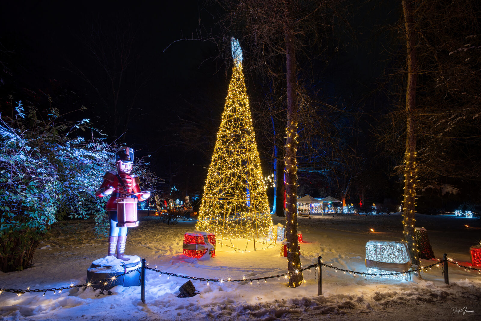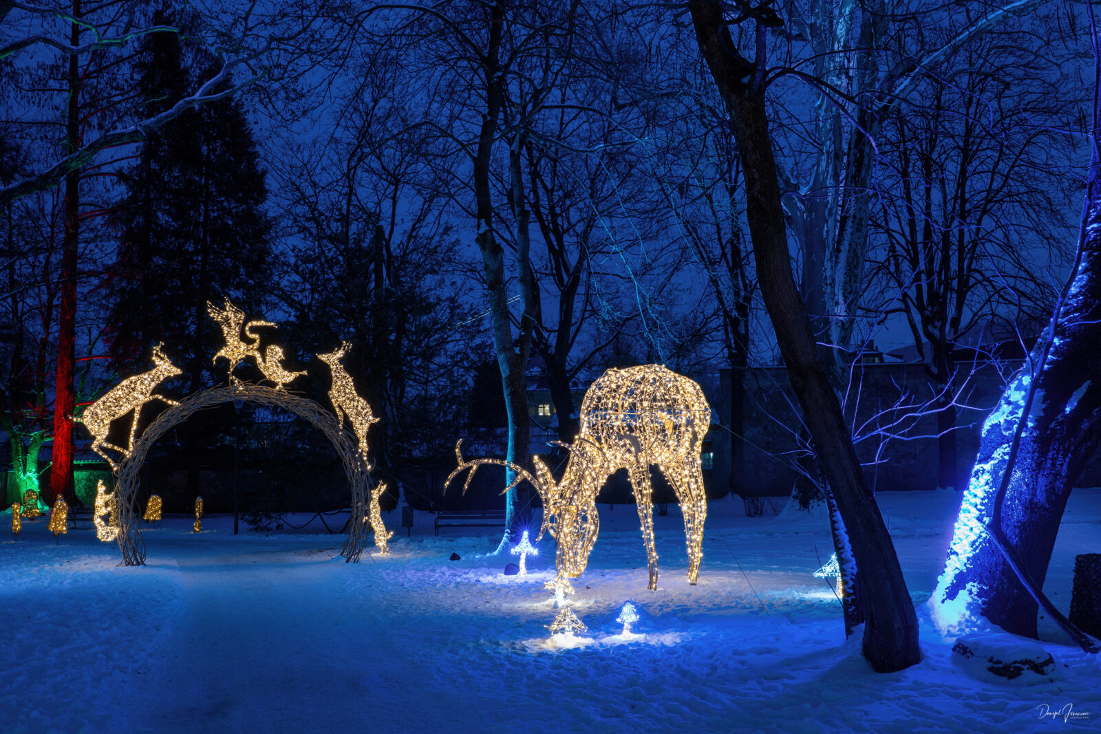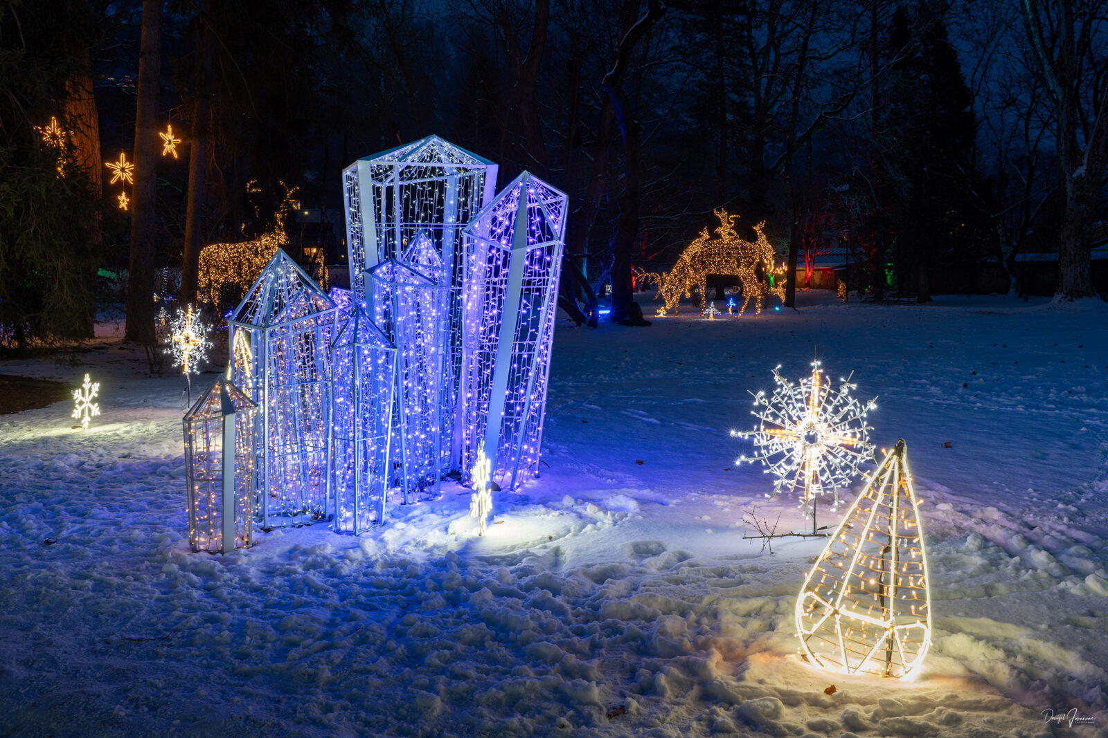 Sobald es dunkel wird, entfaltet der Lichterpark seine volle Wirkung. Entlang der Wege reihen sich kunstvoll gestaltete Lichtinstallationen, die sich harmonisch in die Umgebung des Hofgartens einfügen. Bäume, Sträucher und offene Flächen werden gezielt in Szene gesetzt und schaffen immer wieder neue Blickwinkel und Motive. Die ruhige Atmosphäre macht es leicht, den Alltag für einen Moment auszublenden.
