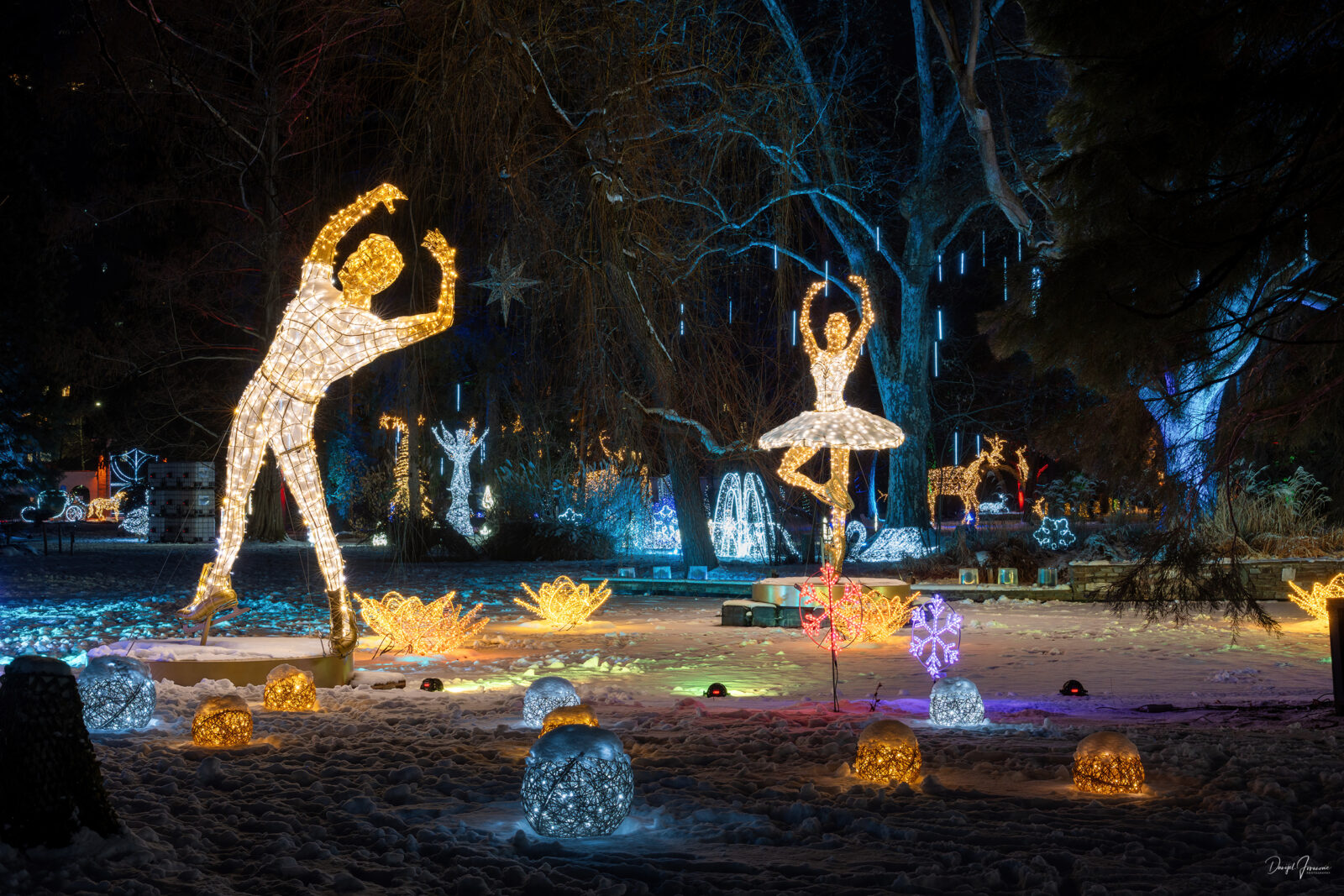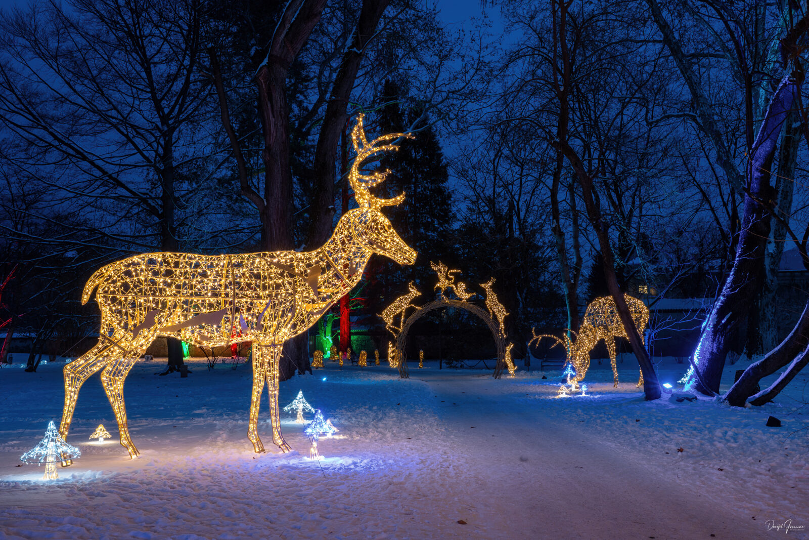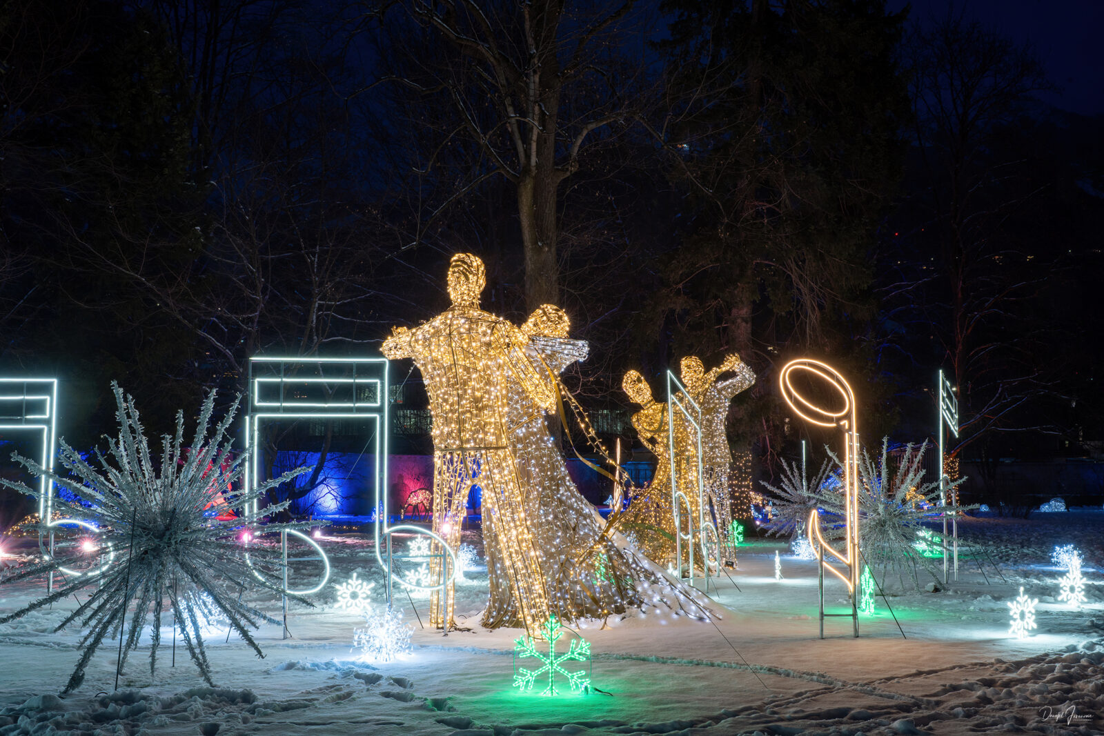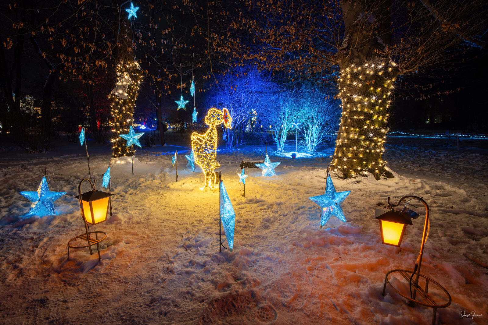Sobald es dunkel wird, entfaltet der Lichterpark seine volle Wirkung. Entlang der Wege reihen sich kunstvoll gestaltete Lichtinstallationen, die sich harmonisch in die Umgebung des Hofgartens einfügen. Bäume, Sträucher und offene Flächen werden gezielt in Szene gesetzt und schaffen immer wieder neue Blickwinkel und Motive. Die ruhige Atmosphäre macht es leicht, den Alltag für einen Moment auszublenden.