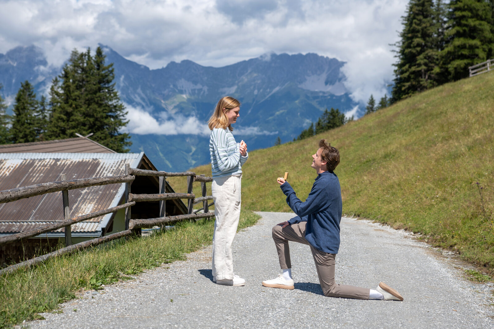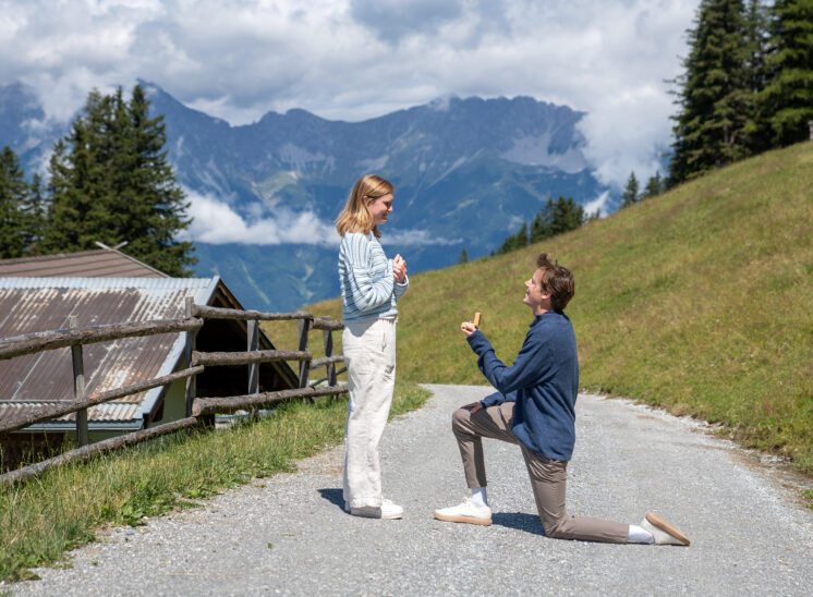 Imagine proposing with the Nordkette mountains as your backdrop, or in a quiet corner of the old town, or even on a hidden trail just above the city. That one big moment – full of emotion, surprise, and joy – captured forever.